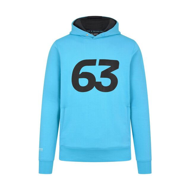 Showcase your support for George Russell with the large driver number '63' graphic print prominently displayed on the front of the hoody, allowing you to represent your favorite Formula 1 driver with pride.